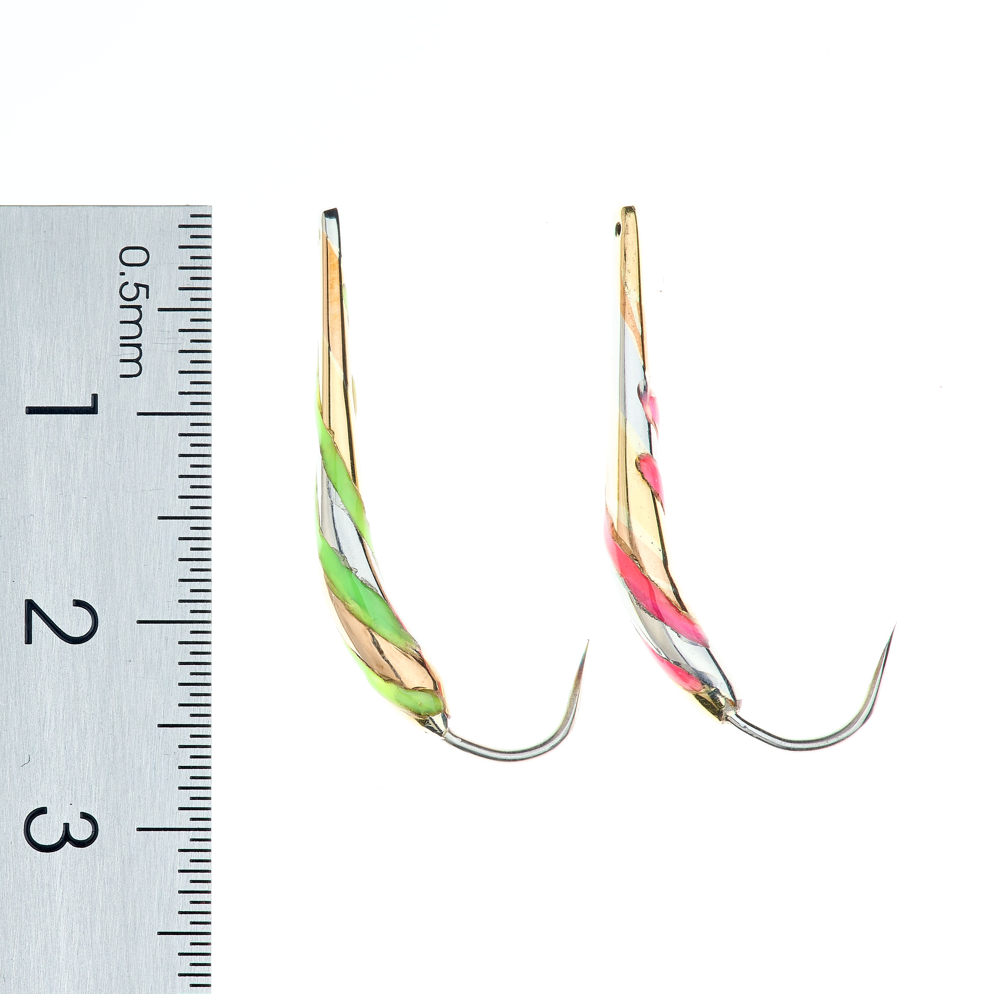Блесна с UV вставками светится в ультрафиолете и позволяет привлечь больше рыбы. Необычное расположение трёх основных цветов в данной модели активизируют даже самую пассивную корюшку (зубаря), навагу на атаку.